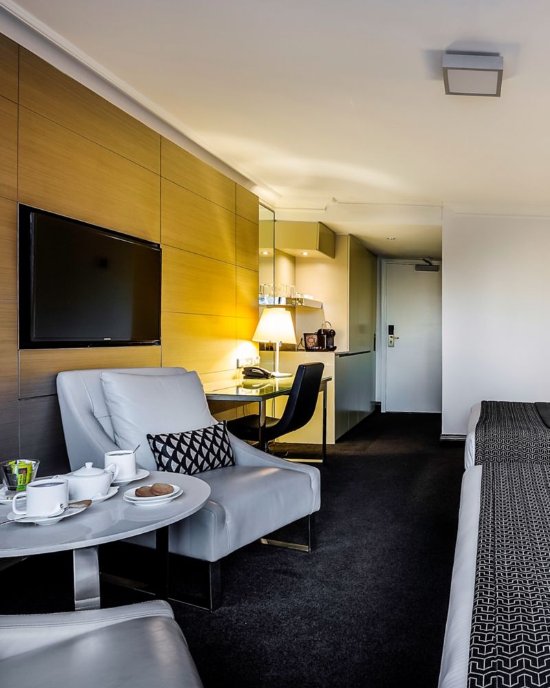 تجمع الغرفة التنفيذية بسريرين مفردين، التي تبلغ مساحتها 36 متراً مربعاً (387 قدماً مربعةً)، بين الحداثة والأداء العملي، لتوفر ملاذاً هادئاً مع إطلالات على الحديقة والمدينة. استمتع بإنترنت فائق السرعة، وماكينة نسبريسو، ومكتب كبير، مما يجعلها مثالية للإبداع والاسترخاء.
