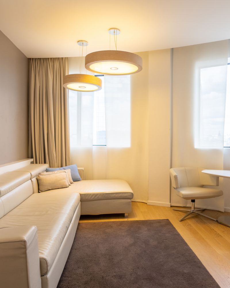 يمتد الجناح العائلي الديلوكس، بإطلالته الرائعة على المدينة، على مساحة 45 متراً مربعاً (484 قدماً مربعة) ويضم سريراً بحجم كينج وسرير أريكة. استمتعوا بخدمة الإنترنت اللاسلكي فائق السرعة المجانية، وماكينة نسبريسو، وقاعدة شحن من Bose. تدعوكم الردهة المنفصلة للاستمتاع بلحظات من الاسترخاء، بينما يوفر الدش المطري وحوض الاستحمام ملاذاً منعشاً.
