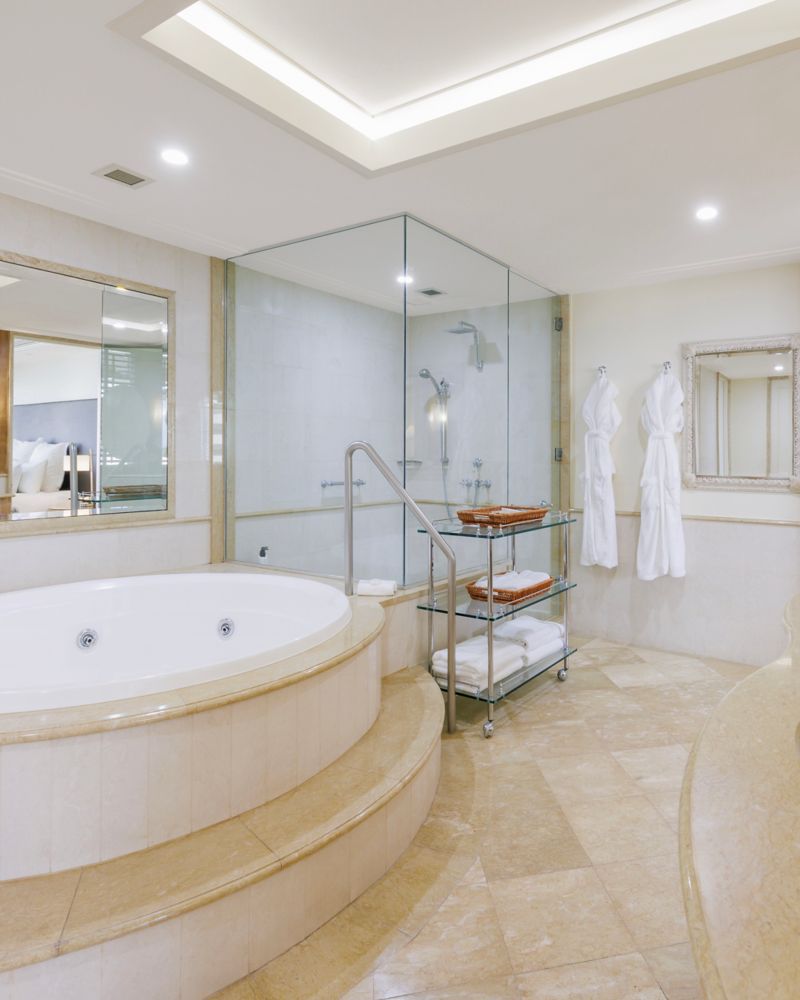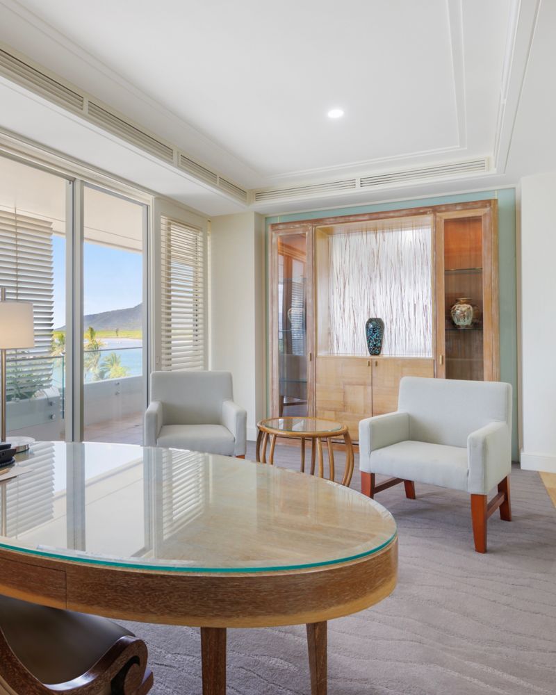 يوفر الجناح الرئاسي مزيجاً متناغماً من الراحة والإبداع في مساحته الواسعة (160 متراً مربعاً / 1,722 قدماً مربعة). انغمس في أجواء ملهمة مع إطلالات مائية خلابة بزاوية 180 درجة، وصالة أنيقة، ومطبخ صغير، ومكتب مثالي للاسترخاء والراحة معاً.