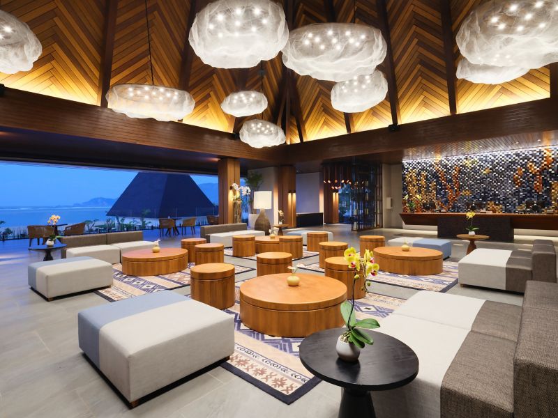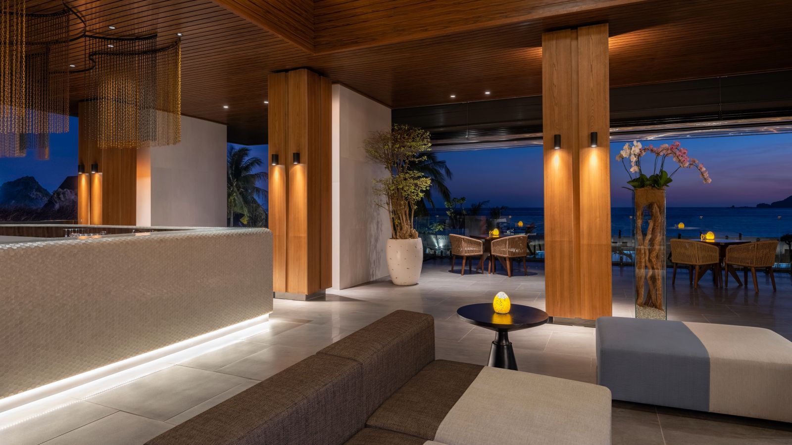 Artful, open-air lobby with stunning ocean and pool views. Get together any time of day for cool drinks, sunset cocktails or a post dinner night cap.