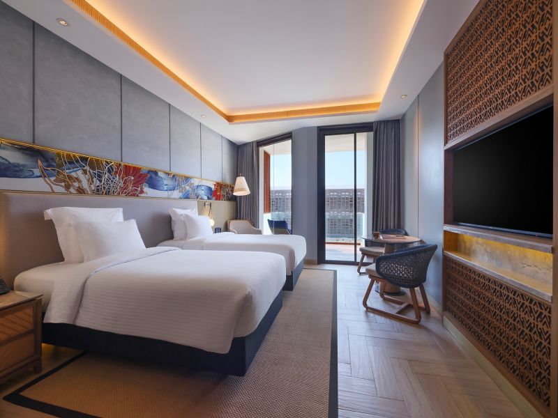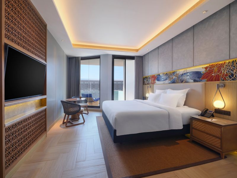 A premium 80sqm offering, only two available! generous bedroom with 1 king bed. Open, bright living separated by an artistic partition. Two 55" flat-screen TVs. Ensuite with a large bathtub, double vanities, a semi walk-in closet and inspirational views.