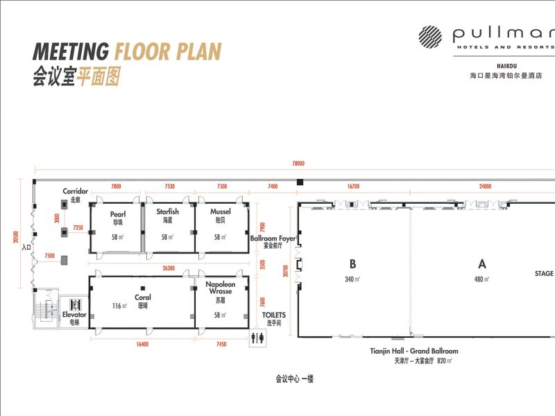72 m²/773 ft² rooms on floors 5-10, private balcony, Pullman bedding, work desk, free WiFi, bluetooth speaker, wireless charger, minibar, shower and bath, C.O. Bigelow amenities, Pullman fitness bag.