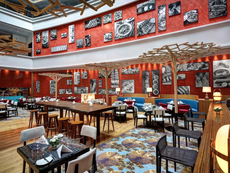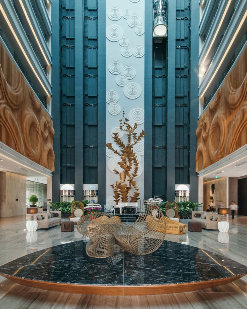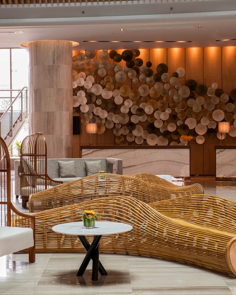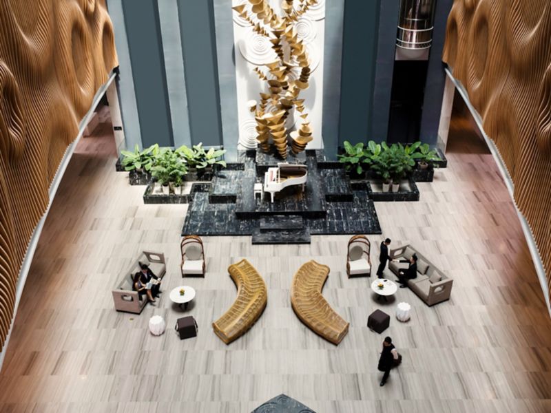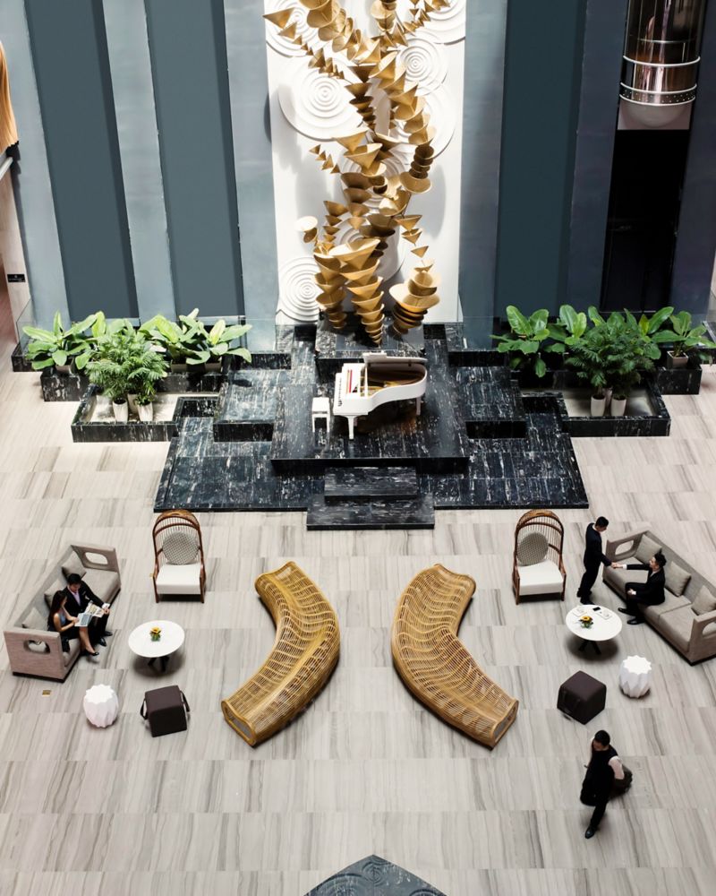 The lounge is a vibrant after-work space on the 1st floor - a place for encounters over savoury tapas, signature cocktails, champagnes and international wines, courtesy of Vinoteca by Pullman.