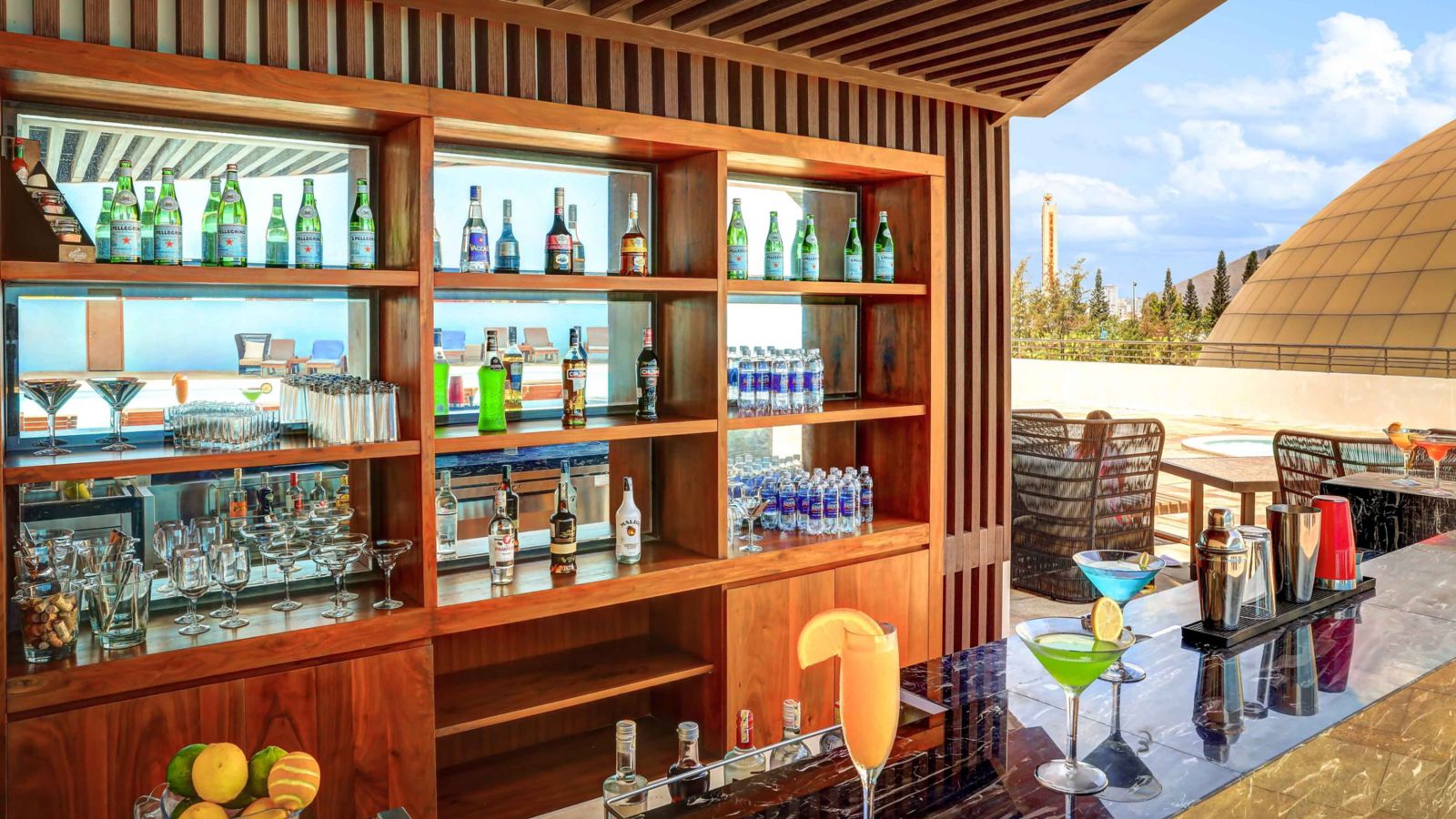 Located next to the outdoor swimming pool, the Pool Bar serves refreshing drinks and a variety of local and international dishes