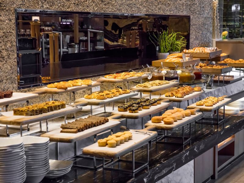 نقدم بوفيه فطور عالمي بمعايير 5 نجوم للنزلاء المقيمين في فندقنا.