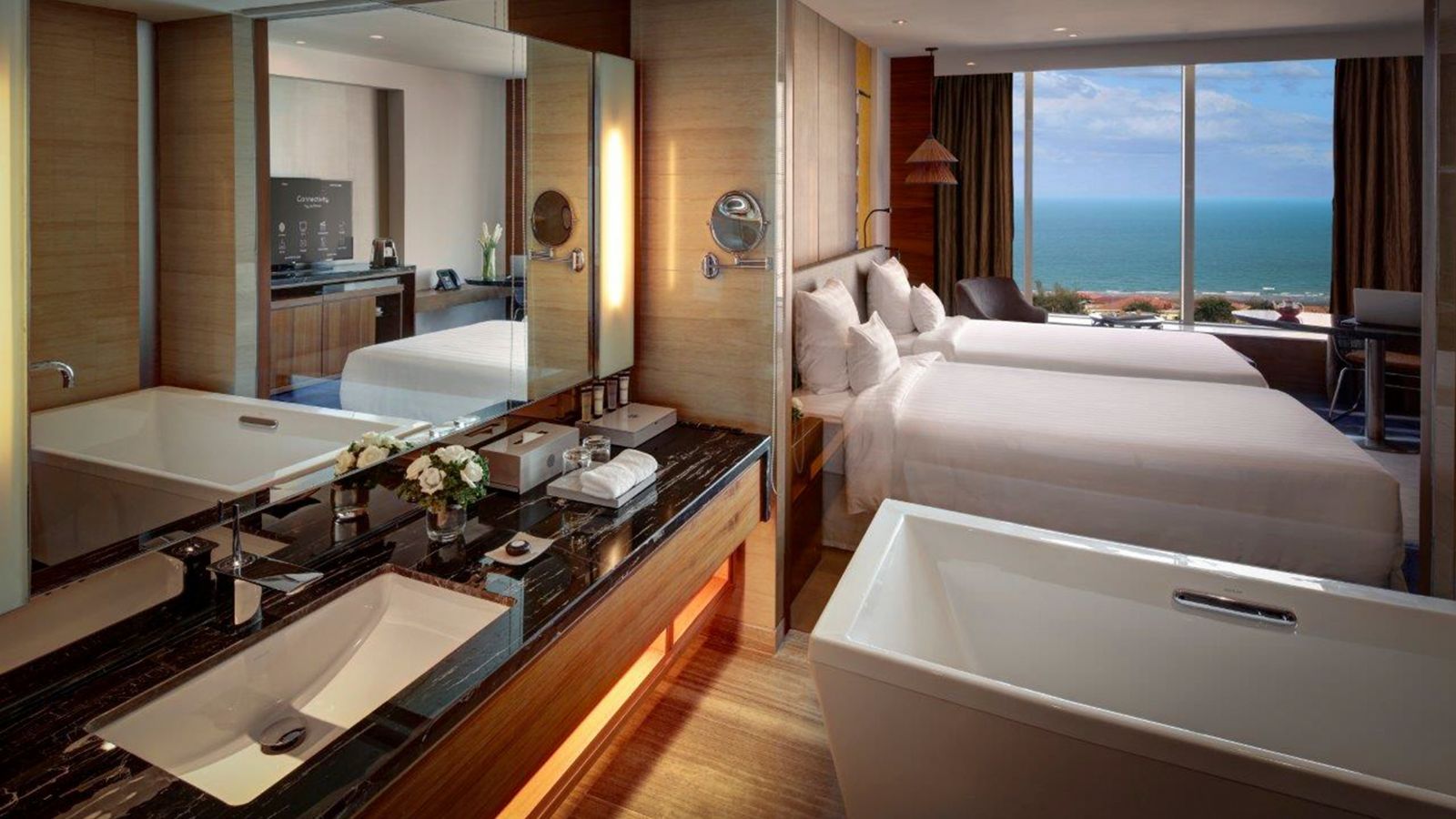 Living the life with our Executive Rooms. Enjoy the Executive Lounge's privileges including private welcome area with stunning sea views, breakfast, all day refreshments, evening cocktails and canapés. A harmony of work and pleasure.