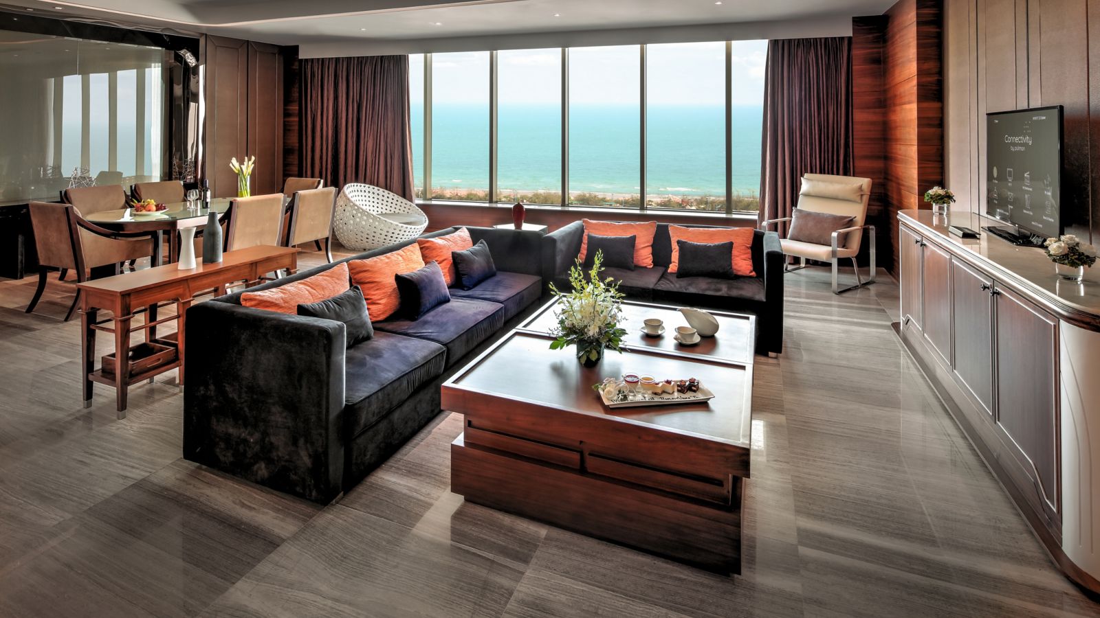 80 m² of separate bedroom and living room with sea or vibrant sunset as backdrop. Stylish furnishings and exclusive Executive Lounge access with breakfast, all day refreshments, evening cocktails, canapés and much more. Pure comfort and performance.