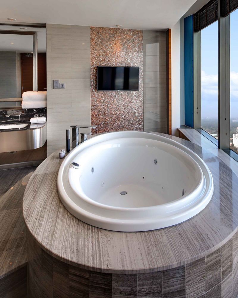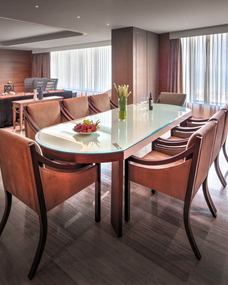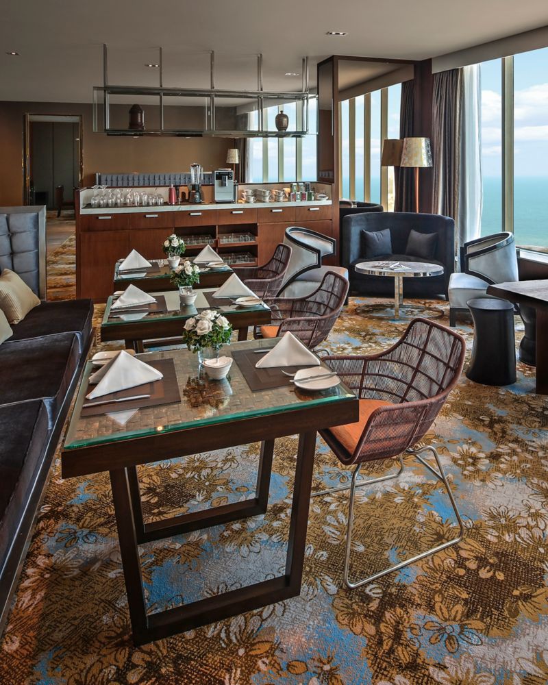 يقدّم الجناح الرئاسي مزيجاً سلساً من الإبداع والسكينة على مساحة 330 متراً مربعاً (3552 قدماً مربعة). استمتعوا بإطلالات بحرية واسعة، وساونا خاصة، ومساحة استوديو مصممة للاستمتاع بلحظات من التأمل والأنشطة الحيوية. يجسّد هذا الجناح ملاذاً منعشاً، حيث تعزز كل تفصيلة فيه أجواءً فريدة تشجع على الاسترخاء والمساعي الإبداعية على حد سواء.