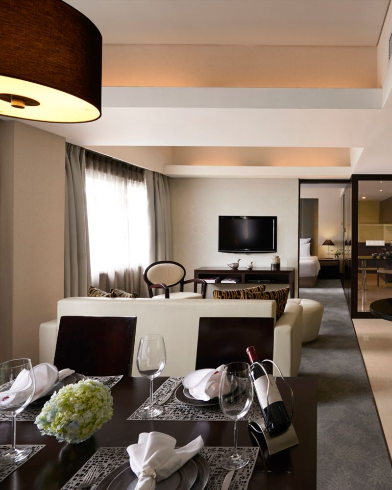 Modern 39 m² room in Jakarta's CBD featuring sofa lounge and ergonomic work desk. Enjoy an elegant raised bath and separate tranquil rain shower. Complimentary WiFi internet.