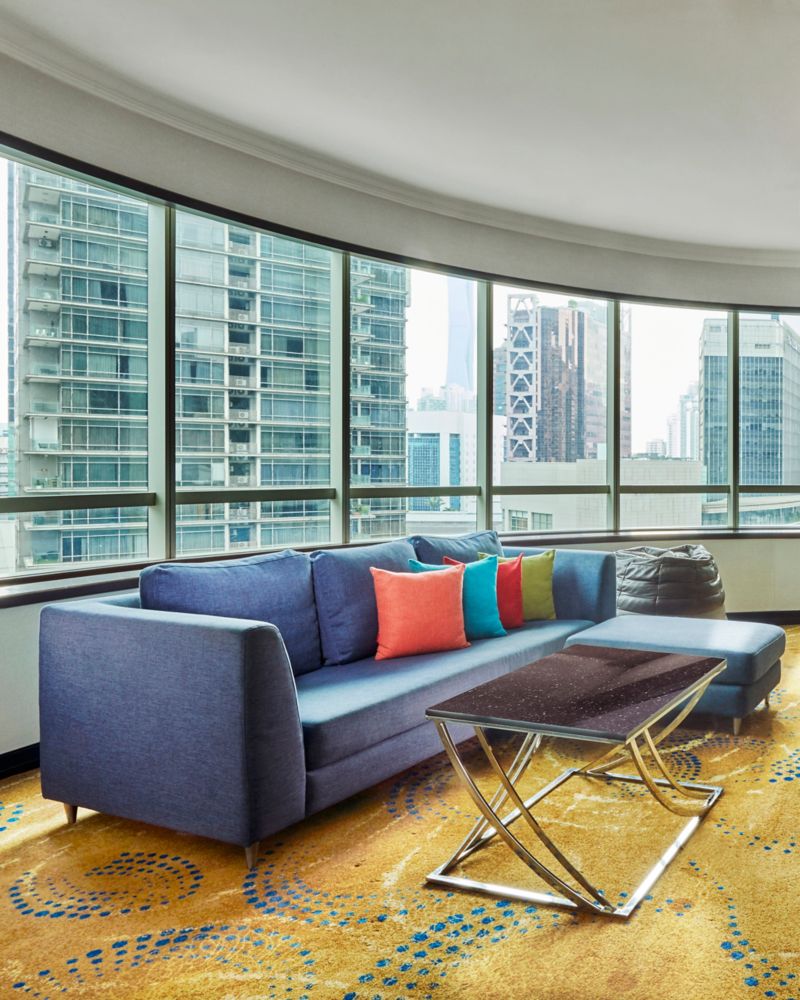 Stylishly designed 35 m² room featuring 49" LED TV, complimentary Wi-Fi access, Mini Bar, in-room Safe, in-room Amenities, Shower and separate Bathtub. Room with natural lighting and panoramic views of Kuala Lumpur's vibrant skyline.
