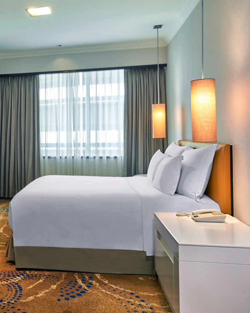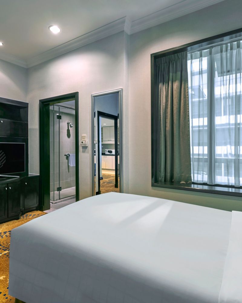 Stylishly designed 35 m² room featuring 49" LED TV, complimentary Wi-Fi access, Mini Bar, in-room Safe, in-room Amenities, Shower and separate Bathtub. Room with natural lighting and panoramic views of Kuala Lumpur's vibrant skyline.
