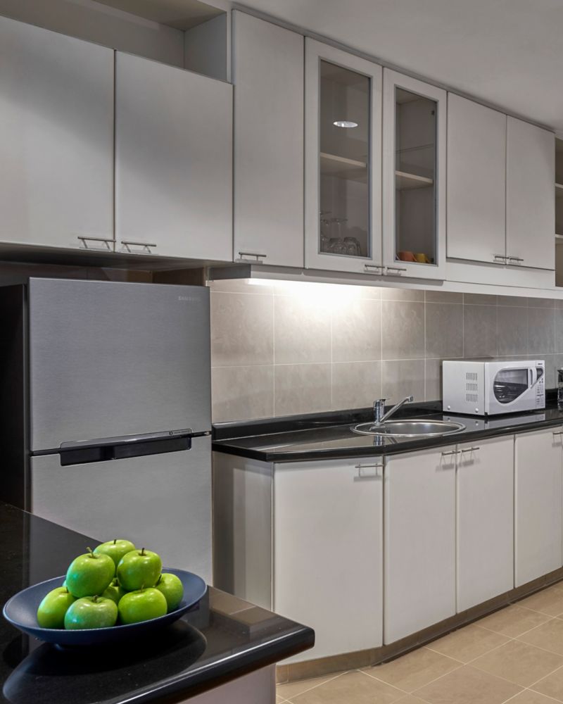 توفر الشقة المكونة من ثلاث غرف نوم، وهي مسكن ركني متكامل الخدمات تبلغ مساحته 201 متر مربع (2164 قدم مربع)، مزيجاً متناغماً من الراحة والإبداع. مع إطلالاتها البانورامية على أفق كوالالمبور النابض بالحياة، تدعوكم هذه المساحة للاستمتاع بكل لحظة والجمع بين الاسترخاء والتركيز. استمتعوا بالتقنيات الذكية، والمطبخ المجهز بالكامل، ومناطق المعيشة وتناول الطعام التي تبعث على الحيوية.