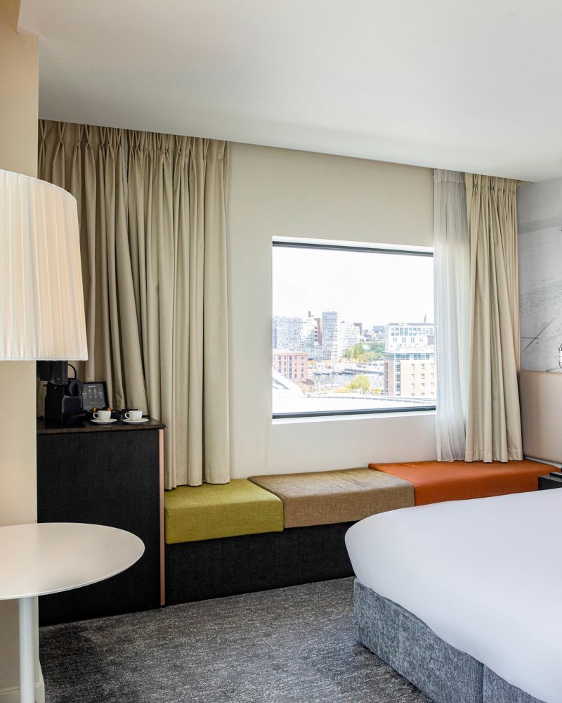 A 25m2 room featuring a view of the River Mersey, king bed, black out curtains and complimentary mineral water. Enjoy free high speed Wi-Fi, 55in TV and luxury Co. Bigalow toiletries.