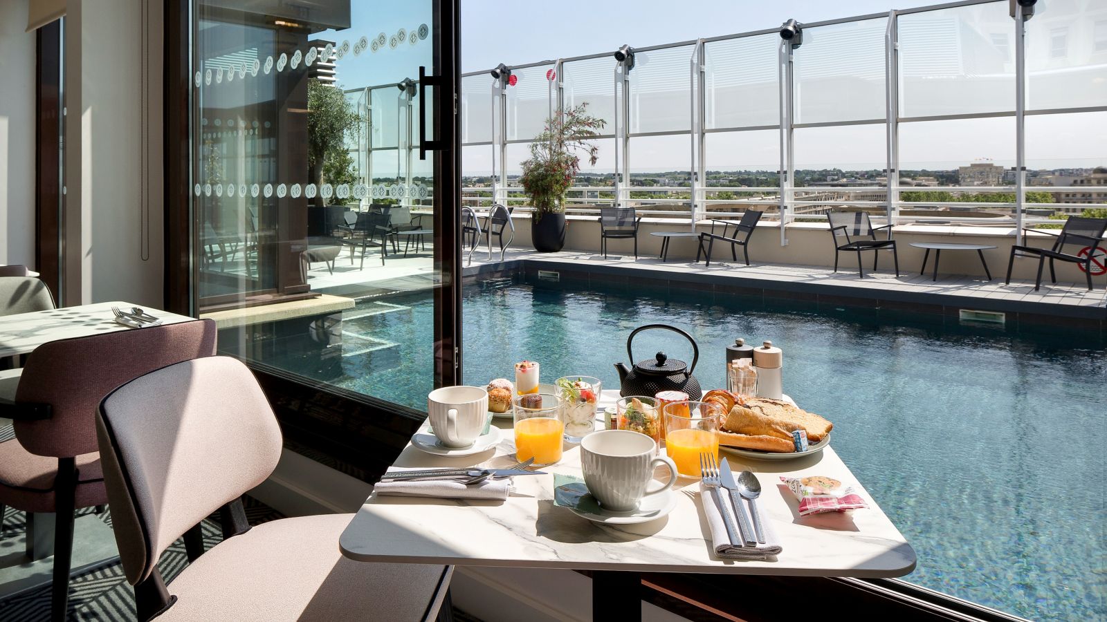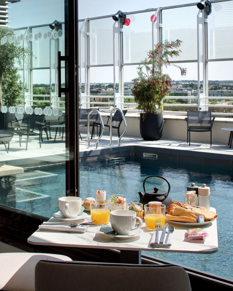 Located on the roof of the hotel, right at the poolside and with a panoramic terrace, Le Vertigo welcomes you for breakfast, a meal or a cocktail. Our chef will offer you a taste of fine Mediterranean cuisine.