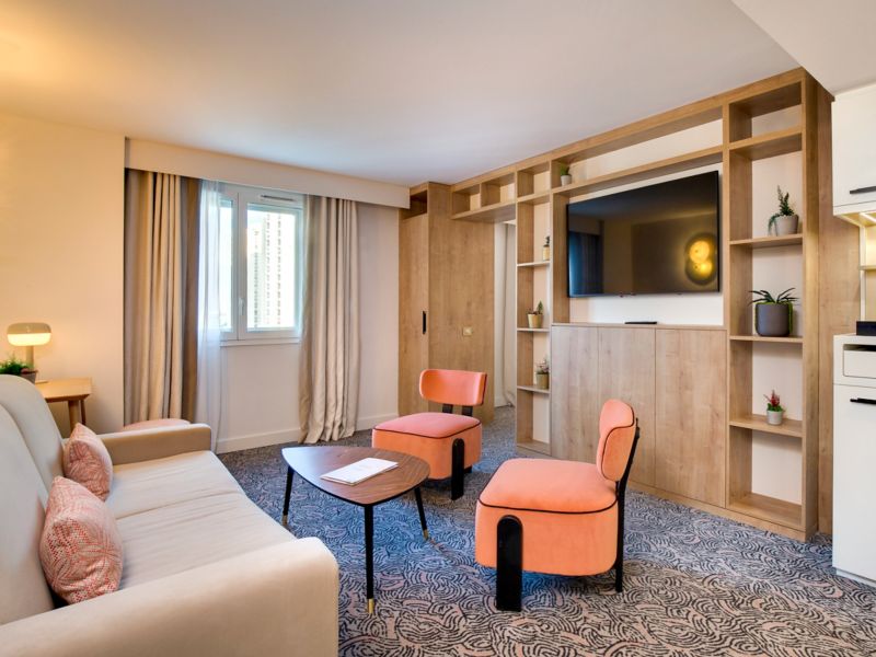Comfortable and modern room. Free WIFI, queen-size bed, with mattress topper and duvet, air conditioning, LCD TV, free bottled water, tea and coffee making facilities, safe, minibar and access to the swimming pool and fitness room.