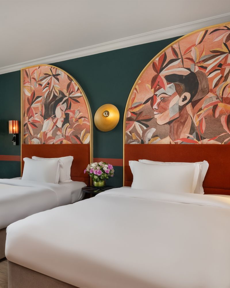 توفر غرف الديلوكس المزودة بسريرين مزدوجين مزيجاً سلساً من الراحة والإبداع. استمتعوا بمساحة 30 متراً مربعاً (323 قدماً مربعة) مصممة بعناية مع تقنيات سهلة الاستخدام وإطلالات منعشة، مثالية للاسترخاء والإنتاجية.