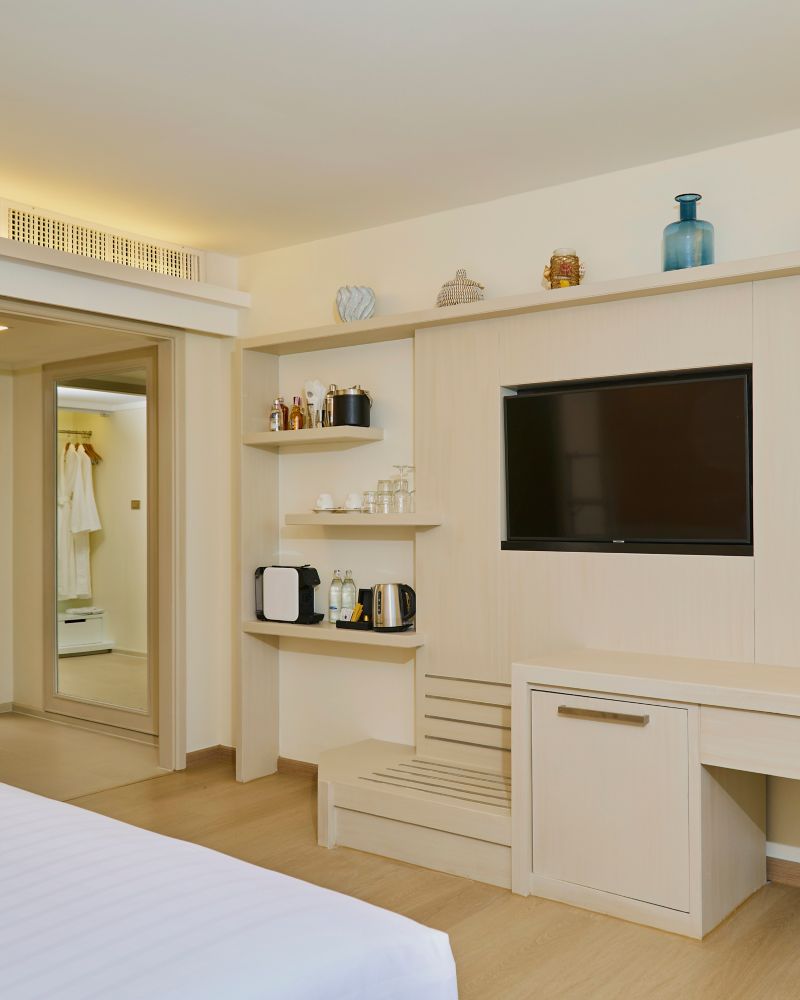 تجمع الغرفة التنفيذية، وهي ملاذ منعش بمساحة 42 متراً مربعاً (452 قدماً مربعة)، بين الإطلالات البحرية المنعشة وهدوء الشرفة الخاصة. استمتع بوسائل الراحة العصرية بما في ذلك مركز وسائط متعددة، ومكتب عمل، وتلفزيون LCD مقاس 43 بوصة، وخدمة إنترنت لاسلكي مجاني، وماكينة قهوة كبسولات، وكل ذلك يكتمل براحة أسرّة بولمان المزوّدة بسريرين مفردين. يتميز الحمام الأنيق بحوض استحمام مفتوح ودش مطري منفصل، معززاً بمستلزمات الاستحمام من سي. أو. بيجلو.