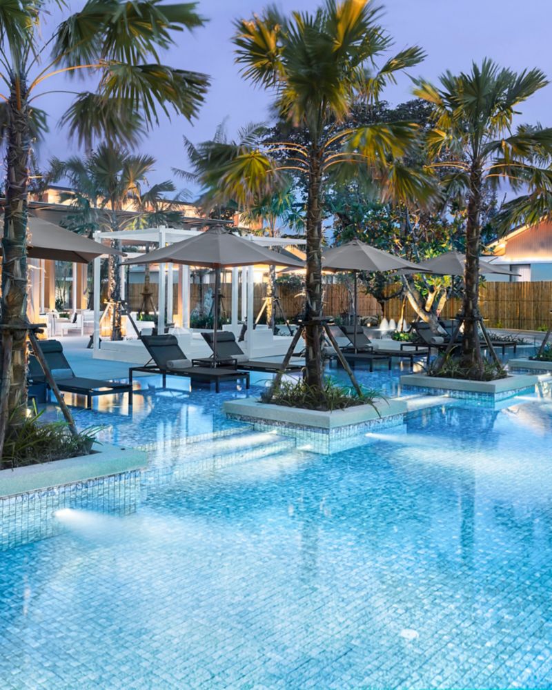 Tharn Pool Bar is the pool bar of Pullman Khao Lak Resort. It is a dynamic place to enjoy refreshments or escape from the midday heat. Guests can cool down with a delectable beverage at the swim up bar.
