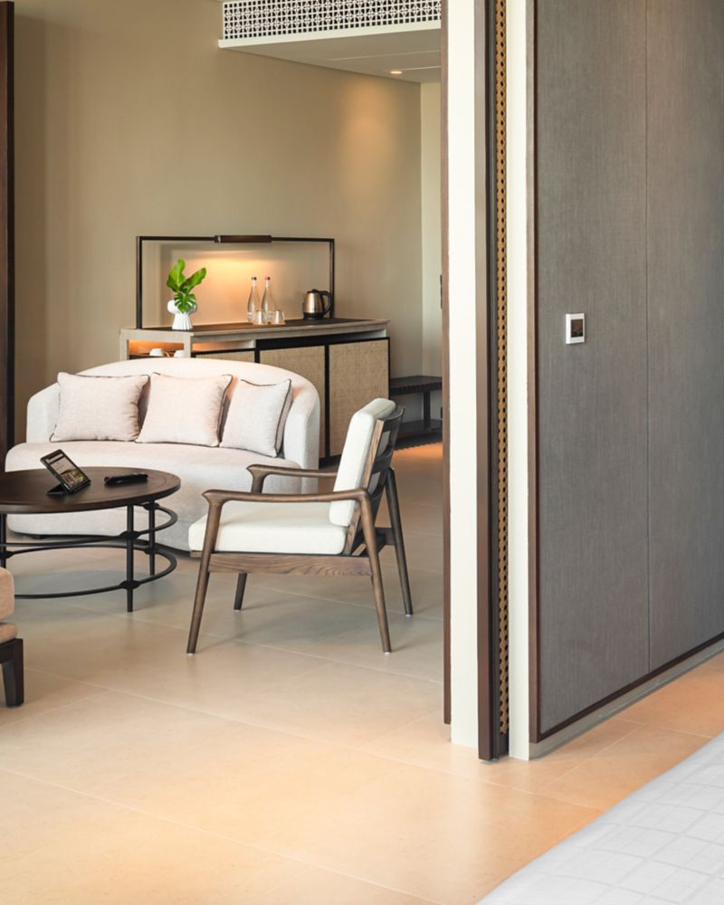 A 44sqm Deluxe Sea View Room is the perfect choice to enjoy our serene seaside location. A generous living area extending out onto a private balcony offers both sea views and a special connection with the surrounding area. Wake up to a gentle sea breeze.