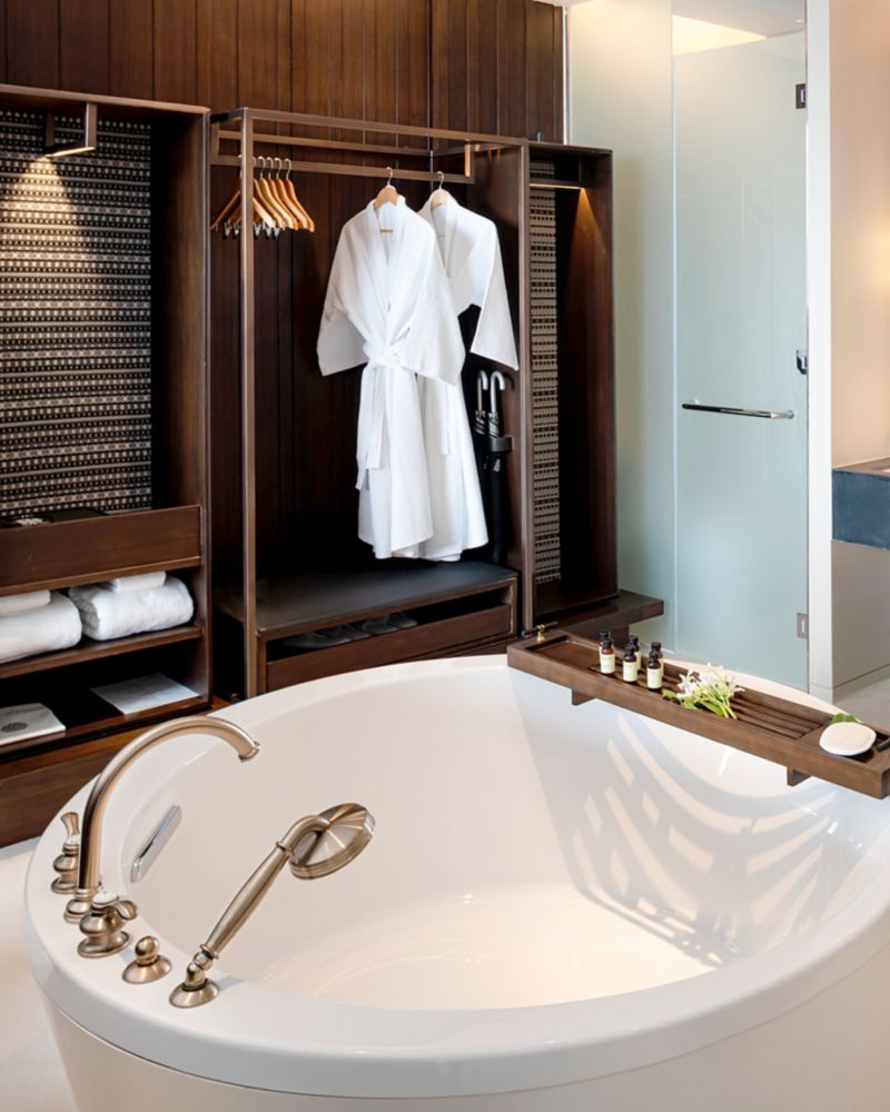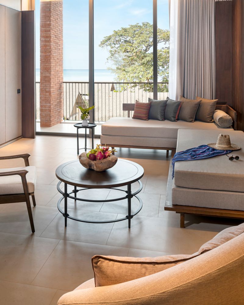 Retreat to a stylish Deluxe Room overlooking the lush green landscapes of Khao Lak. The room features a large balcony, free Wi-Fi, coffee making facilities. A 55" LED TV, plush sofa bed and a beautiful bathroom with rain shower and C.O. Bigelow amenities.