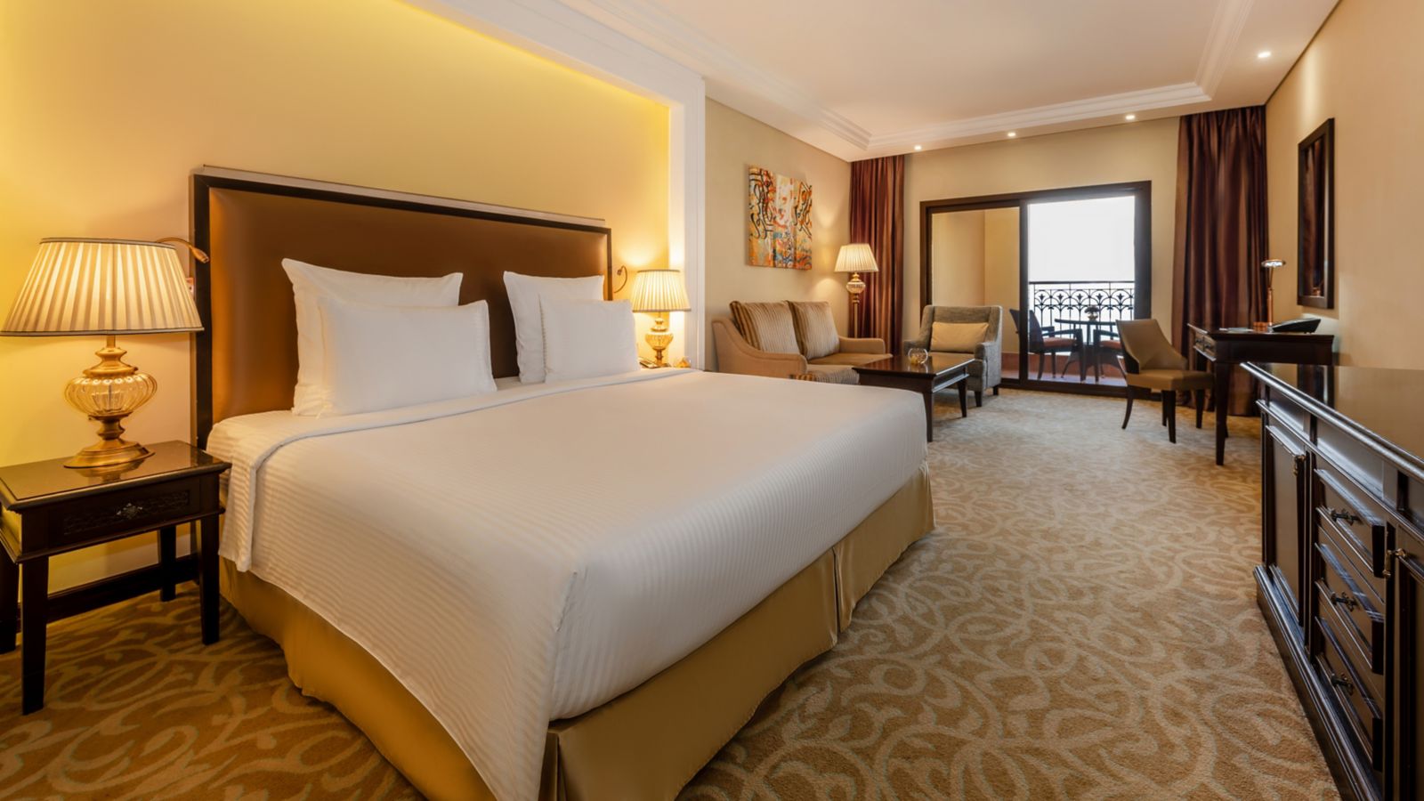اكتشفوا مساحاتنا المصممة بأناقة، من غرف السوبريور إلى الجناح الملكي، حيث يقدّم كل منها مزيجاً فريداً من الراحة والإطلالات المُلهمة. استمتعوا بوسائل راحة تعكس اهتماماً بالتفاصيل وتقنيات ذكية مصممة لإقامة سلسة.