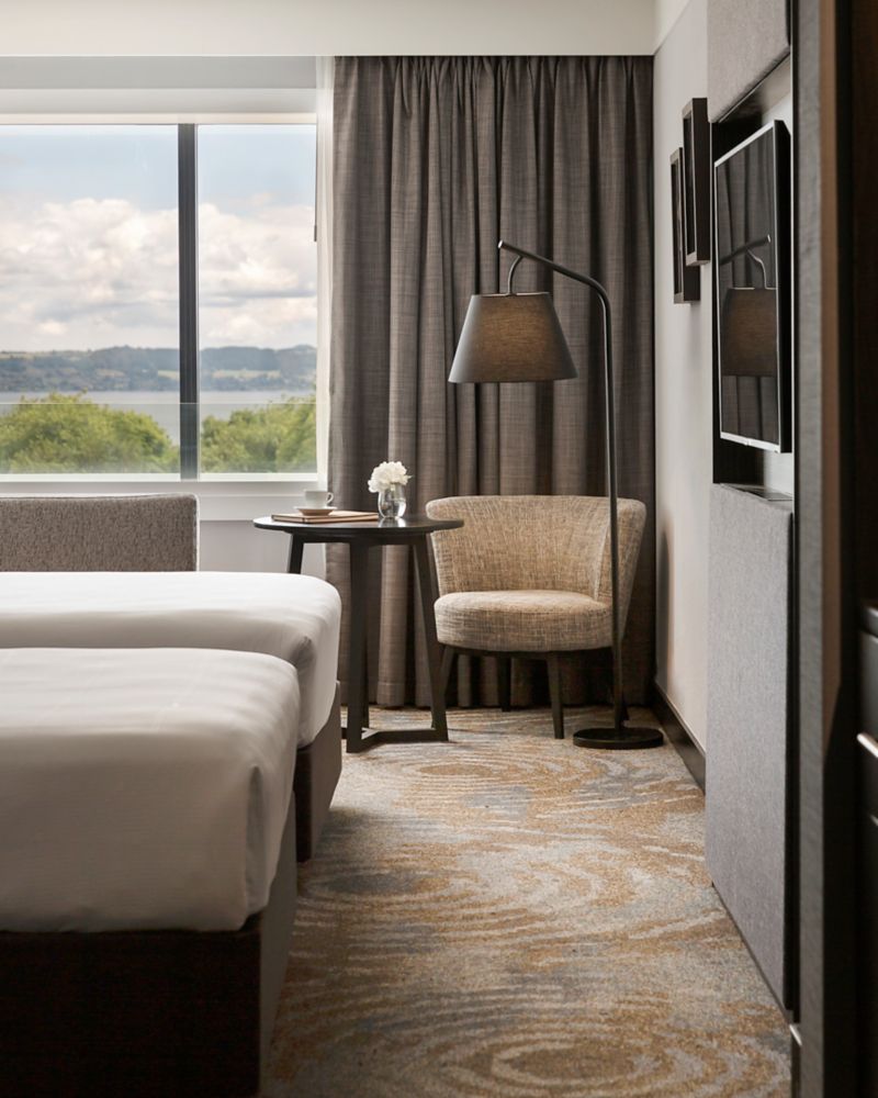 33 SQM. Experience style and comfort in an upscale room with views of Lake Rotorua .The room features a 50" Smart TV, wifi, mini bar, chaise lounge, rain shower, C.O. Bigelow bath amenities and pillow menu.