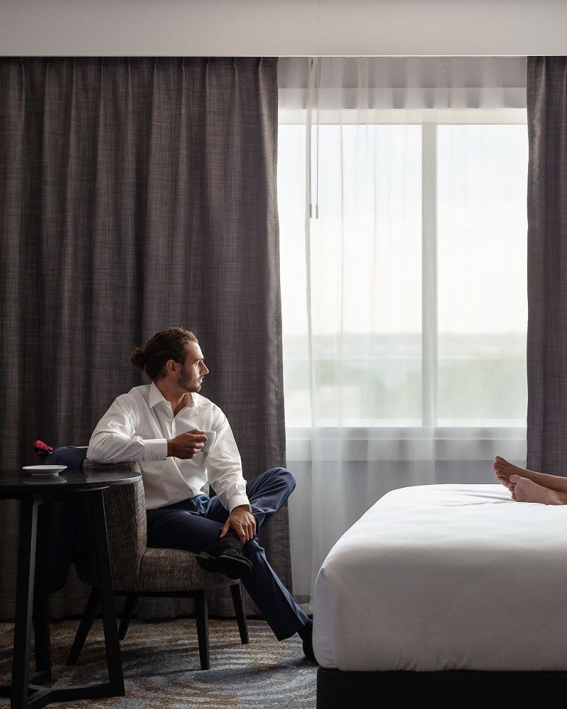 33 SQM. The perfect haven for families or those requiring two separate beds. The contemporary open plan room offers a 50" smart TV, wifi, mini bar, rain shower, C.O. Bigelow bath amenities and views of the iconic Lake Rotorua.