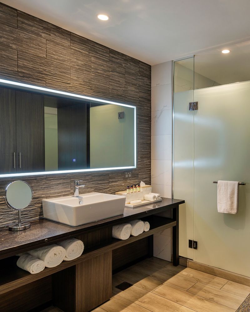 33 SQM. Experience style and comfort in an upscale room with views of Lake Rotorua .The room features a 50" Smart TV, wifi, mini bar, chaise lounge, rain shower, C.O. Bigelow bath amenities and pillow menu.