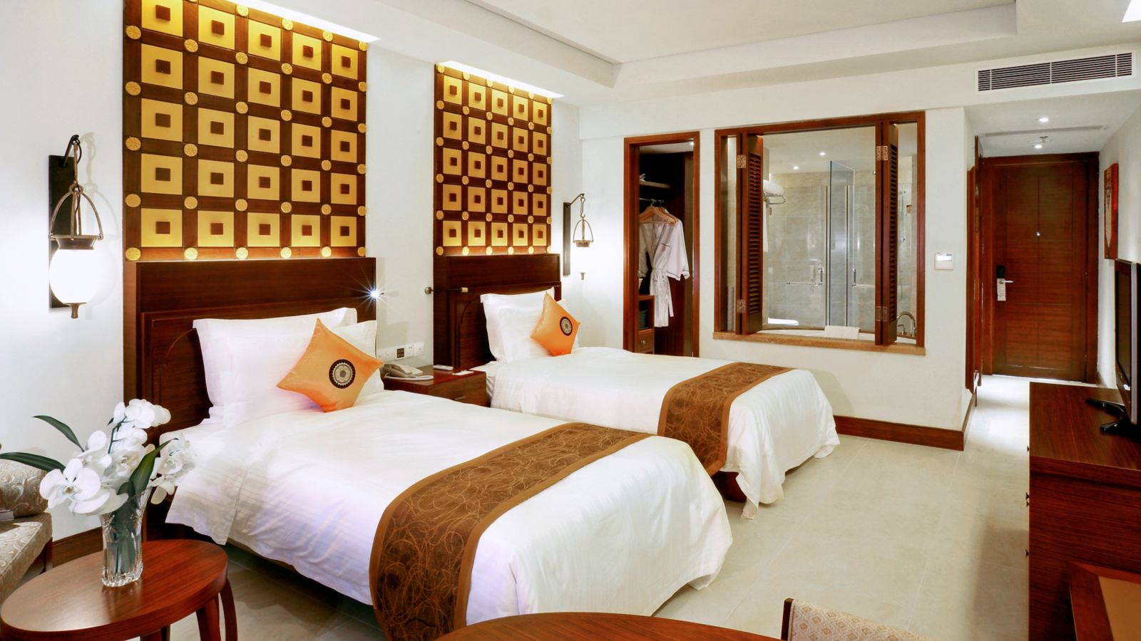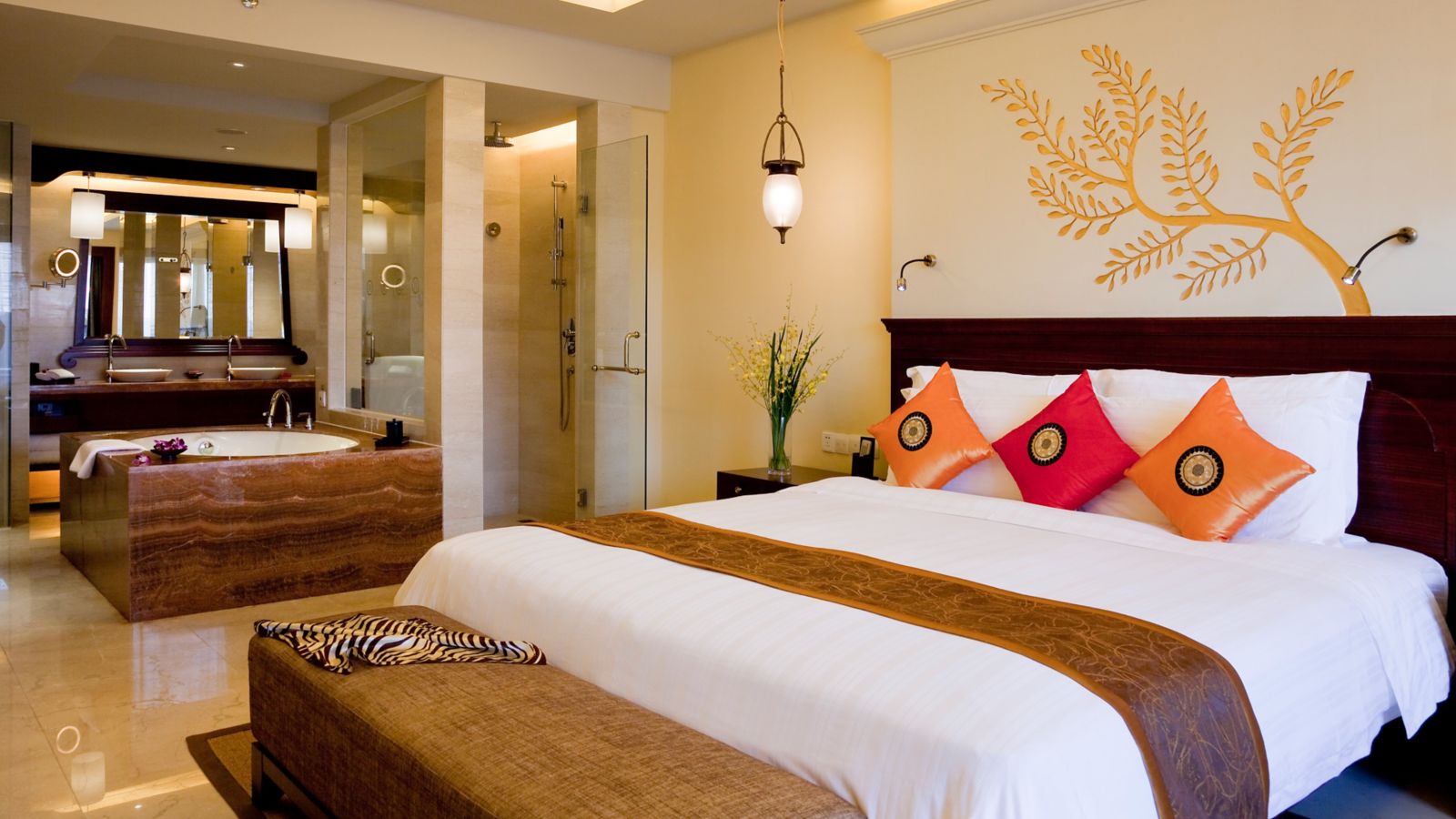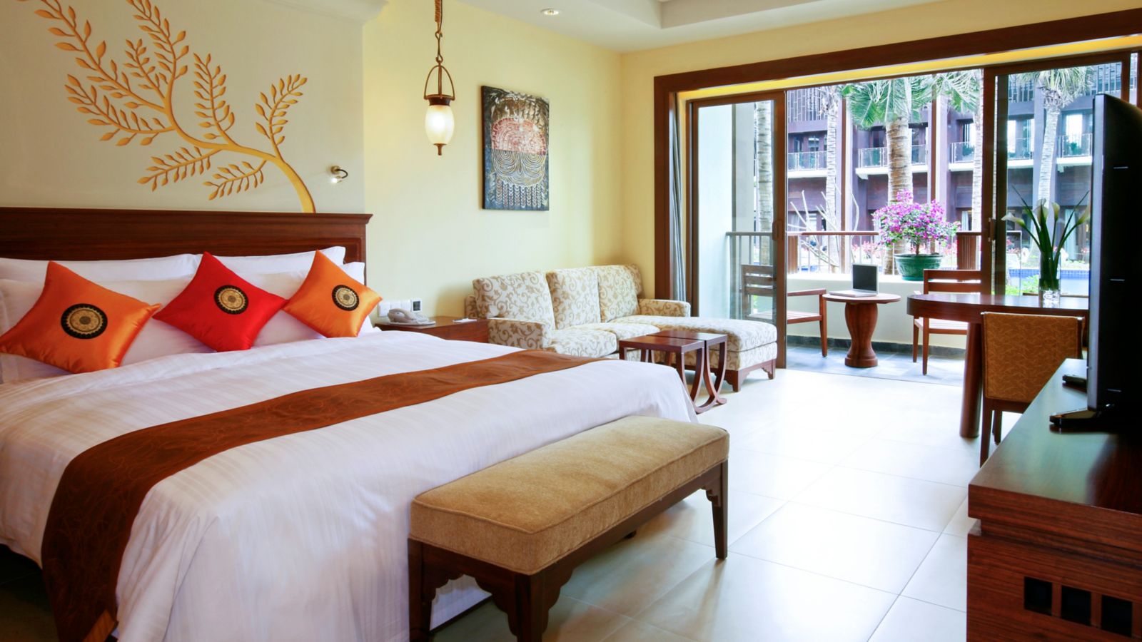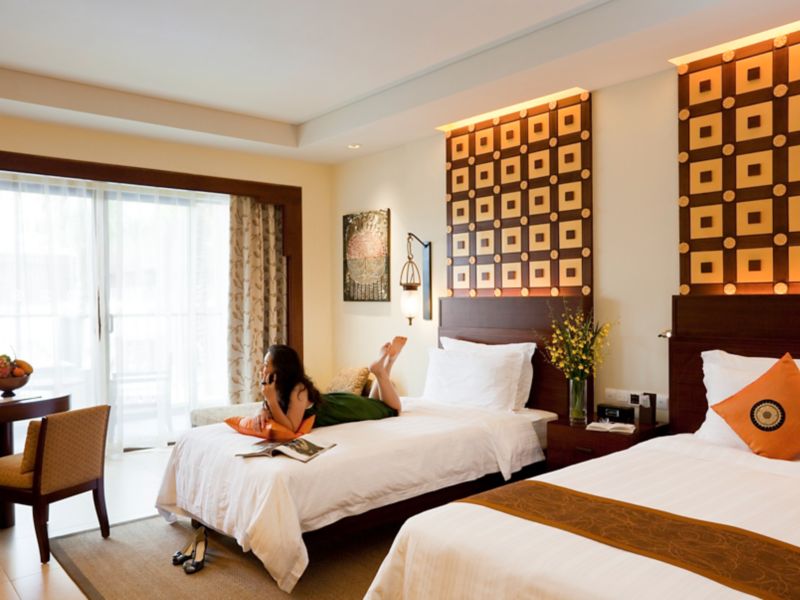 Spacious up to 48sqm with a strong touch of Asian style, offering flat screen TV, bath tub, separate shower room, views of swimming pool. The South East Asian style sculptures and a tropic garden is just outside of the room.