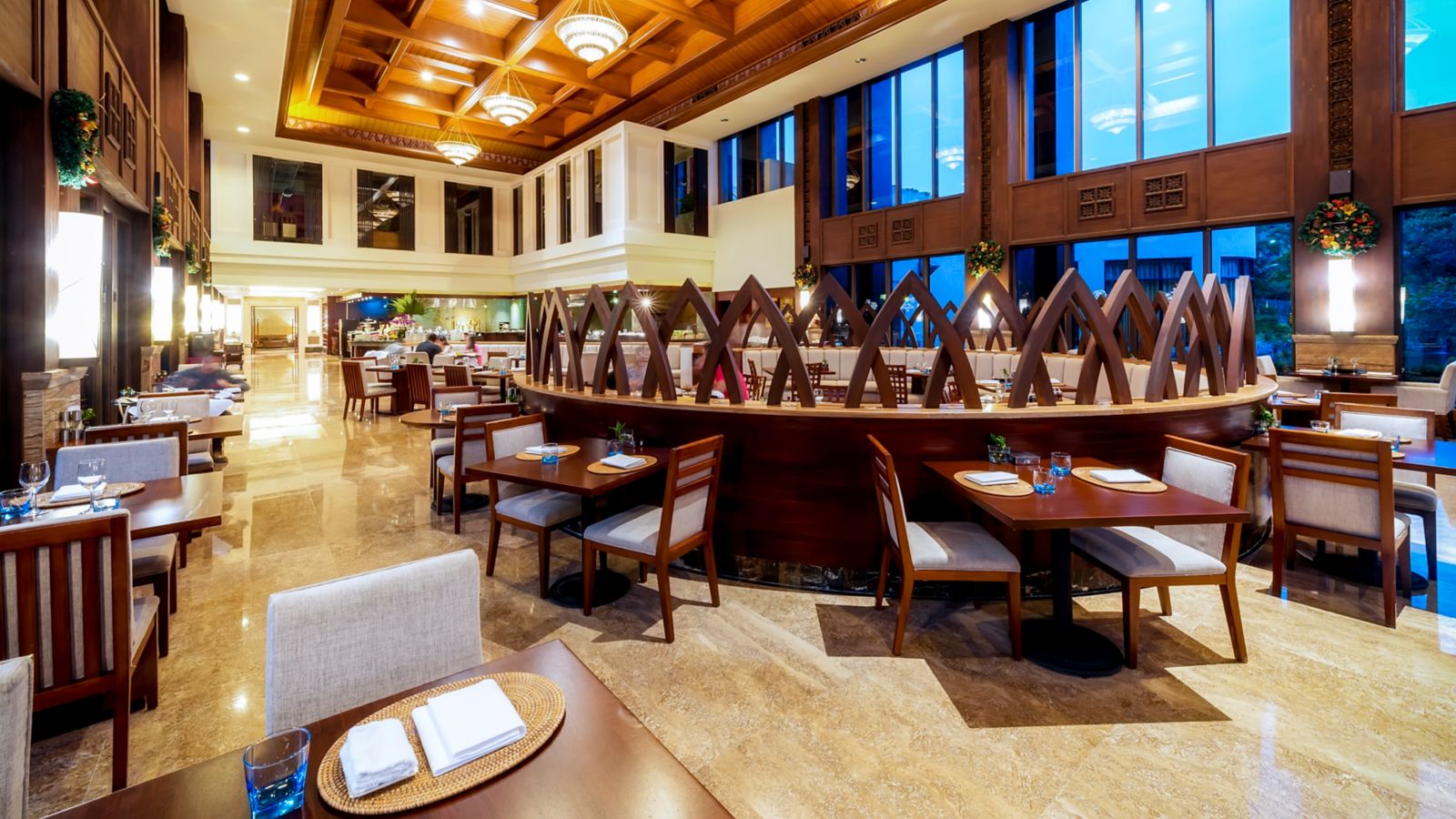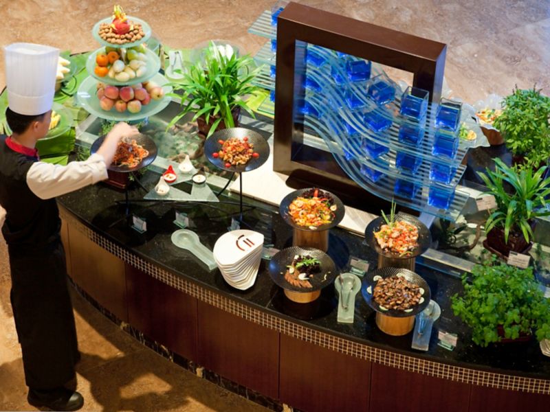 Selection of Asian and Western cuisines in the all day dining restaurant, overlooking beautiful lagoon, and splendid buffet for breakfast and dinner