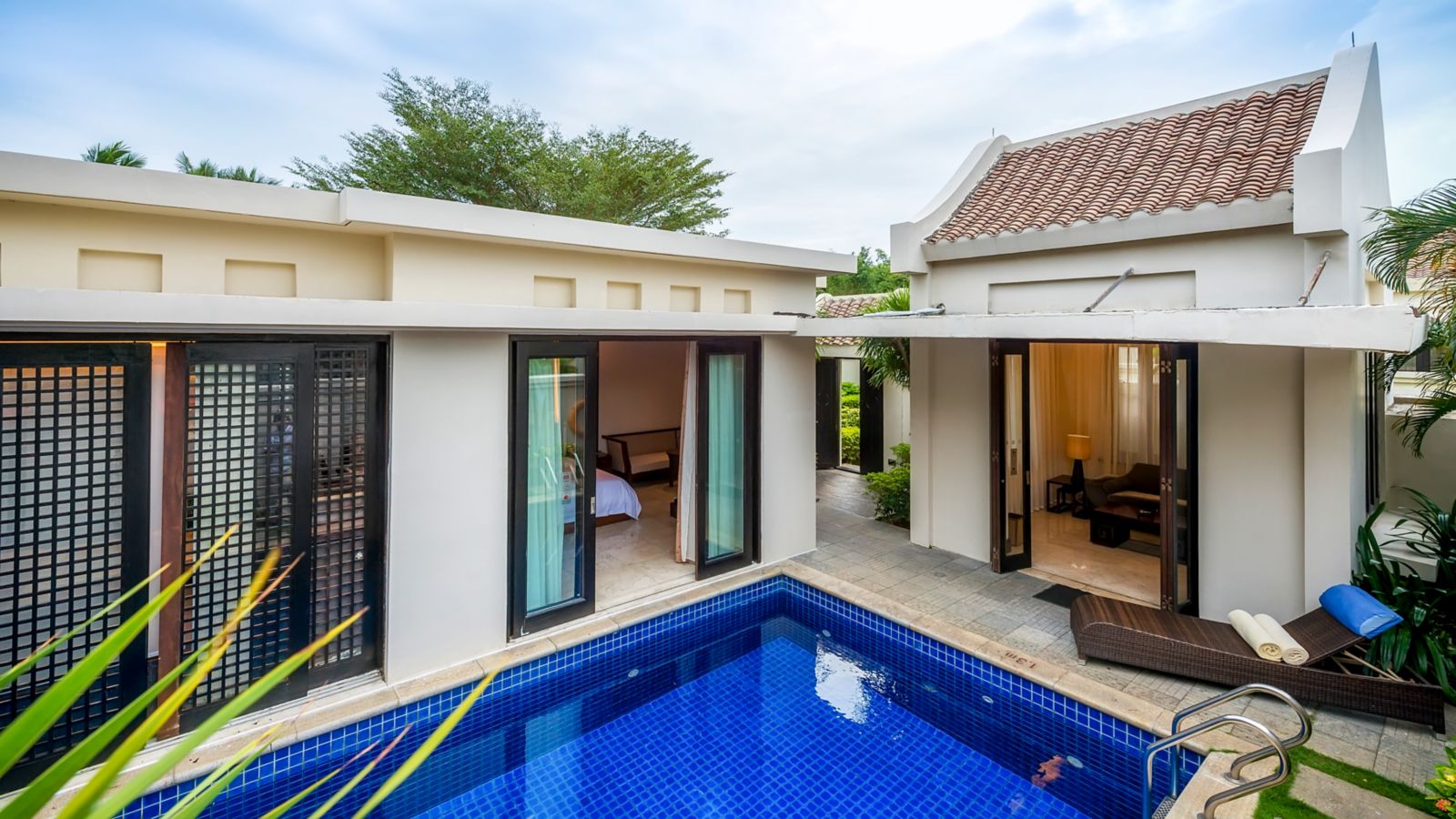 Spacious up to 150 m² in Nanyang style, features a private garden with swimming pool access from room, bathtub, flat screen TV, mini bar and separate living room.