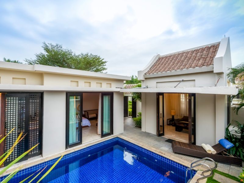 Spacious up to 150 m² in Myanmar style, features a private garden with swimming pool access from room, bathtub, flat screen TV, mini bar and separate living room.