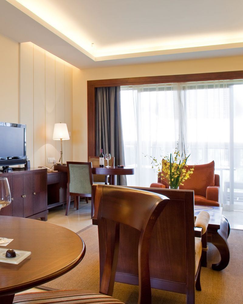 Spacious up to 48sqm with a strong touch of Asian style, offering flat screen TV, bath tub, separate shower room, views of swimming pool. The South East Asian style sculptures and a tropic garden is just outside of the room.