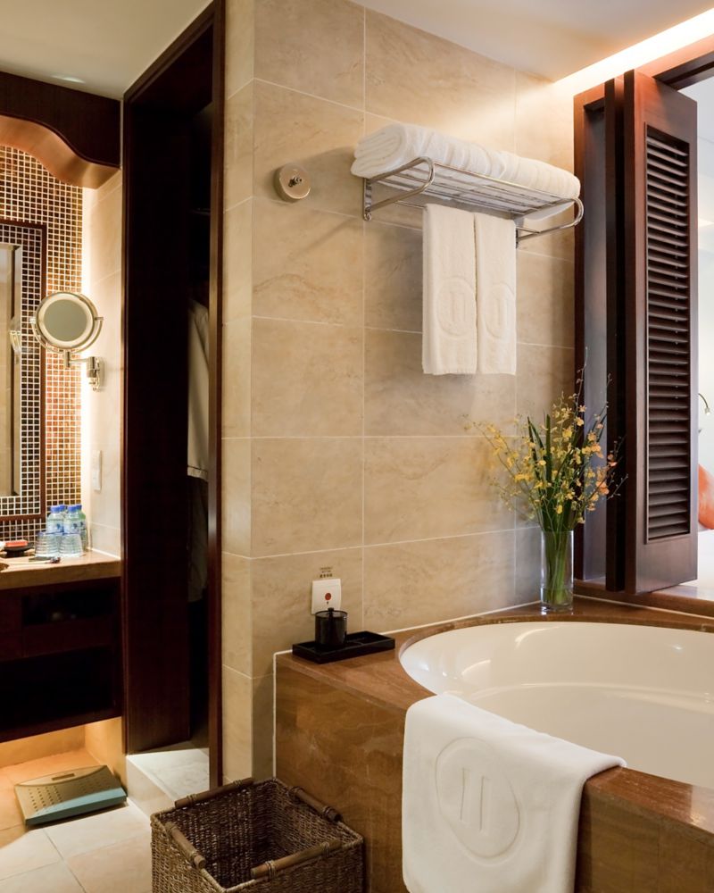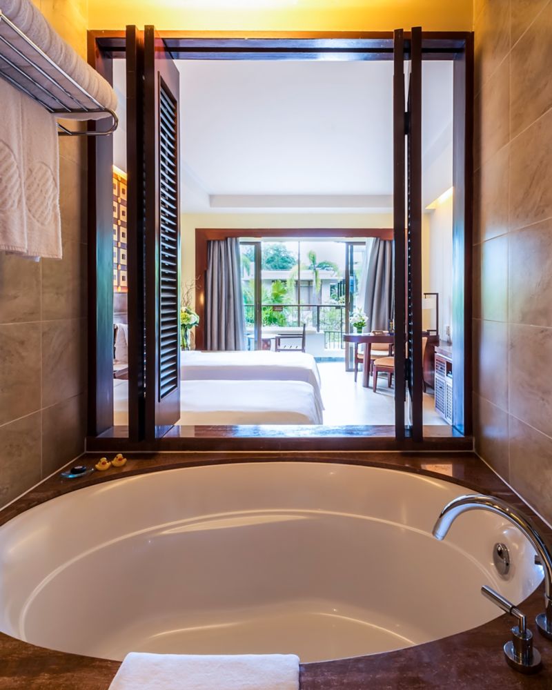 Spacious up to 48sqm with a strong touch of Asian style, offering flat screen TV, bath tub, separate shower room, views of swimming pool. The South East Asian style sculptures and a tropic garden is just outside of the room.