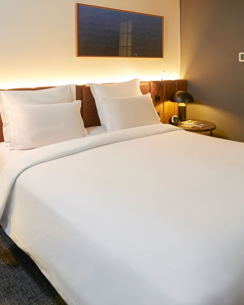 27-m² apartment with queen-size bed, city view, free WiFi, 49" LCD TV, tea & coffee facilities, Nespresso machine with complimentary capsules, Pullman slippers and 2 complimentary cans of water per day.
