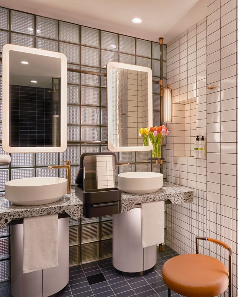 اصعد إلى غرفة ديلوكس المميزة والمستوحاة من الموضة، وهي ملاذ من المفروشات الأنيقة والمسرات الكبيرة مثل ميزة البث على الشاشة ودُش مطري منعش وماكينة عمل قهوة نسبريسو ومتعة الشاي T2 والمياه المفلترة ومستلزمات حمام من C.O Bigelow وخدمة Wi-Fi مجانية