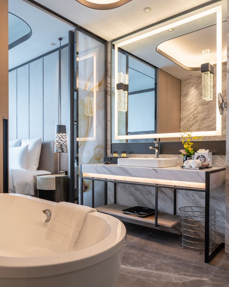 36 m² / 388 ft² rooms on floors 16 to 21. Wi-Fi, 48″ Smart LED TV, music station, rain shower and bathtub, C.O. Bigelow toiletries, laptop safe, and minibar. Non-smoking rooms available upon request.