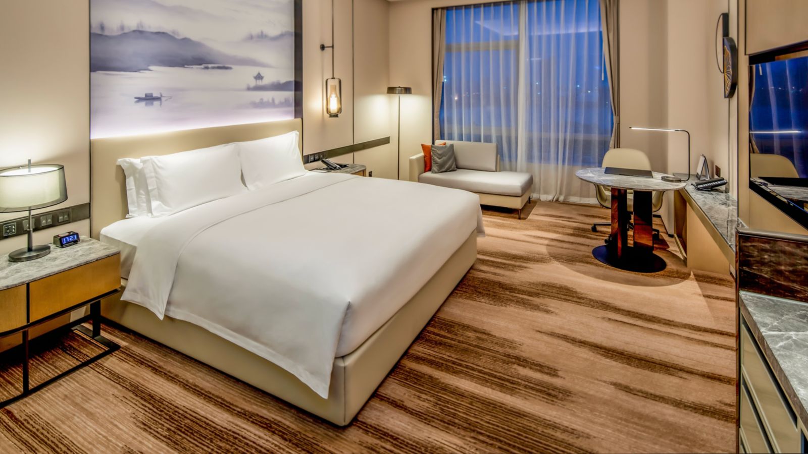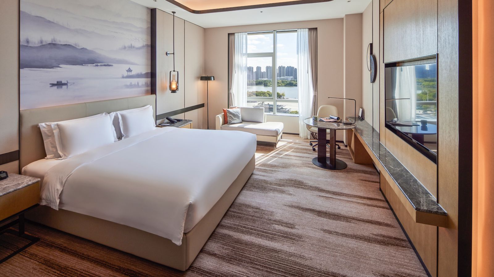 45SQM / 484SQF, levels 12 to 17, Pullman bedding, Lake View, Rain shower and Bathtub, C.O.BIGELOW Bath Amenities, Free WiFi, 55-inch LCD TV, Bluetooth Speaker, Coffee machine, Executive lounge and happy hour access, Non-smoking room.