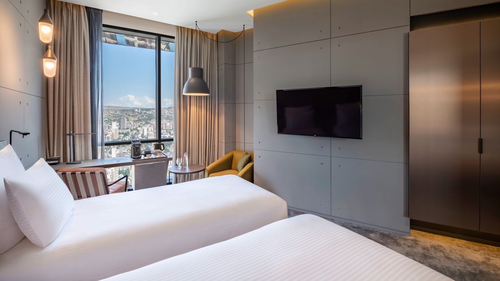 اكتشفوا مساحات يجتمع فيها الإبداع مع الراحة. كل غرفة، بدءاً من السوبيريور ووصولاً إلى الجناح، تمزج بين التقنيات الذكية ووسائل الراحة التي تعكس اهتماماً بالتفاصيل، وتتميز بإطلالات بانورامية على المدينة. هنا، كل لحظة هي دعوة لتجديد النشاط والإلهام.