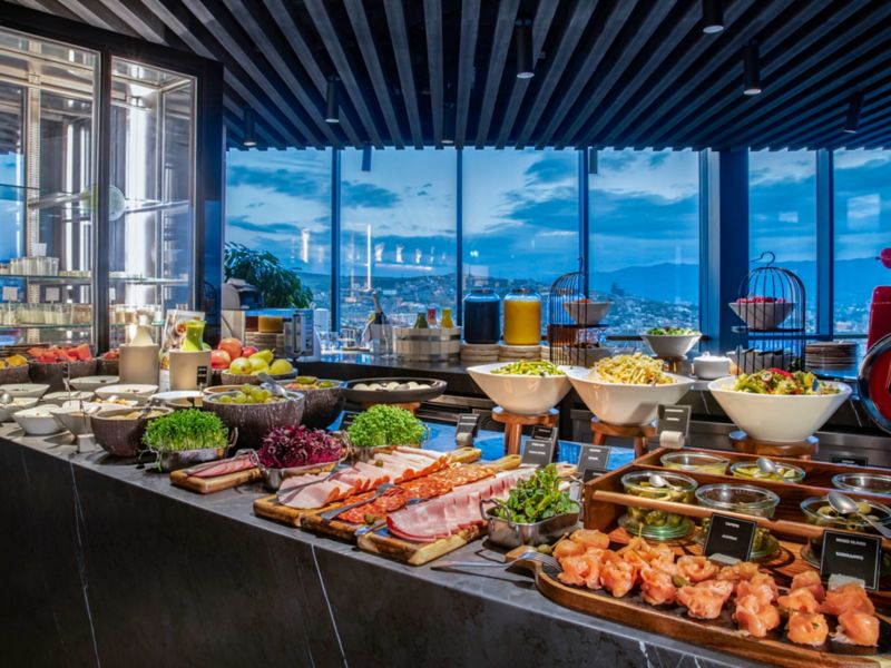 استكشفوا مطعم دوماس، جوهرة الطهي الفرنسي، وتذوقوا أطباقاً شهية مع تشكيلة من أنواع النبيذ الفرنسي والجورجي. تفضلوا بزيارة "ويذر ريبورت"، أعلى سكاي بار في المدينة، للاستمتاع بالسوشي والتاباس والكوكتيلات المحضّرة بعناية. يقدم جانكشن وجبات فطور نابضة بالحياة على مدار اليوم وخيارات صحية.