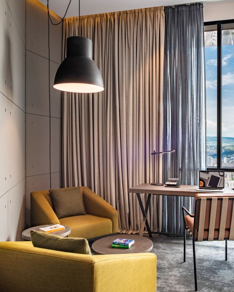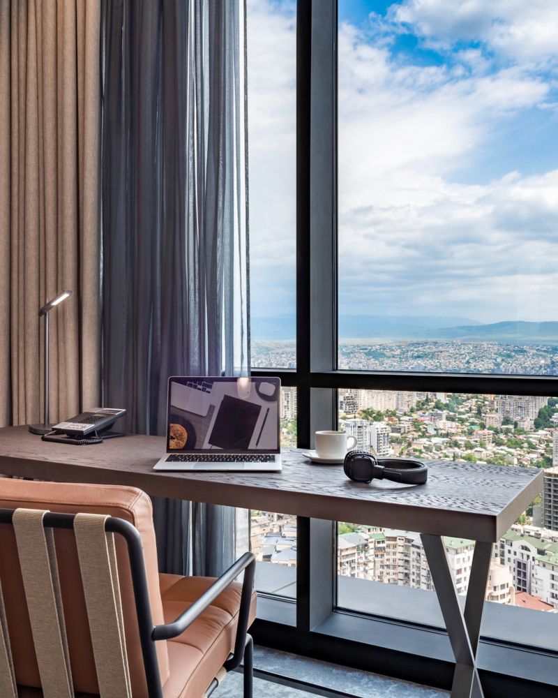 تجمع الغرفة التنفيذية المزودة بسرير كينج بين الراحة ولحظات الإبداع في مساحة تبلغ 35 متراً مربعاً (377 قدماً مربعة). استمتعوا بإطلالات بانورامية على المدينة وبمجموعة من وسائل الراحة المصممة لتعزيز الإبداع والاسترخاء. جربوا راحة أسرّة بولمان، ومساحة عمل عصرية، ولمسات مدروسة مثل الدش المطري الواسع ومستلزمات الحمام الفاخرة.