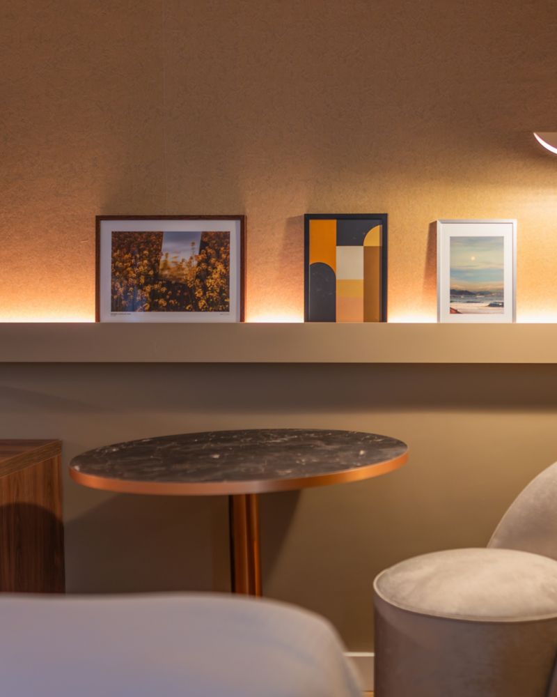 366 sq.ft. of elegance and space with king-size bed, 65" TV. Lounge with sofa, premium coffee machine and multimedia station. Chic bathroom with slippers and bathrobes. Mini-bar with complimentary half bottle of champagne.