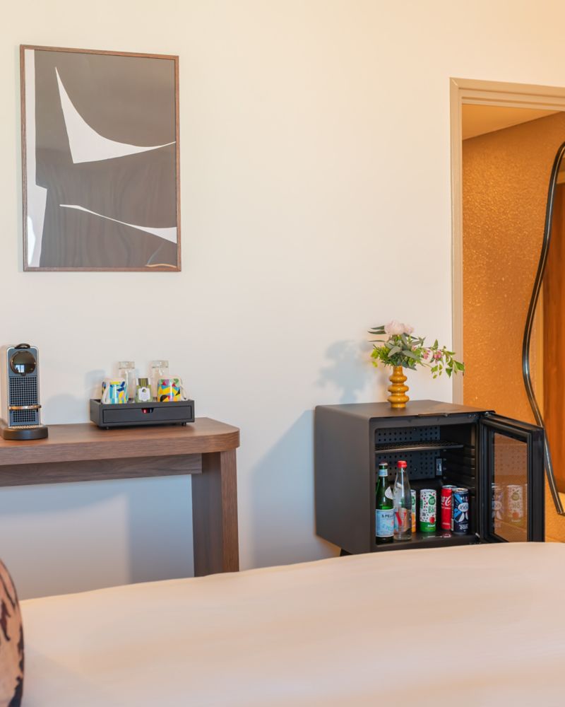 - ميني بار مزوّد بمشروبات غازية مجانية