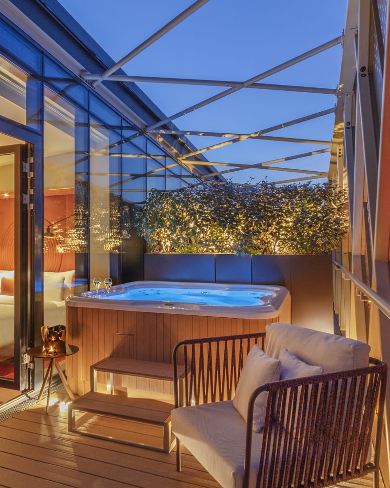 Die Harmony Suite bietet eine einzigartige Mischung aus durchdachtem Komfort und Raum für Konzentration. Genießen Sie den großzügigen Balkon mit privatem Jacuzzi – perfekt für eine bewusste Auszeit.