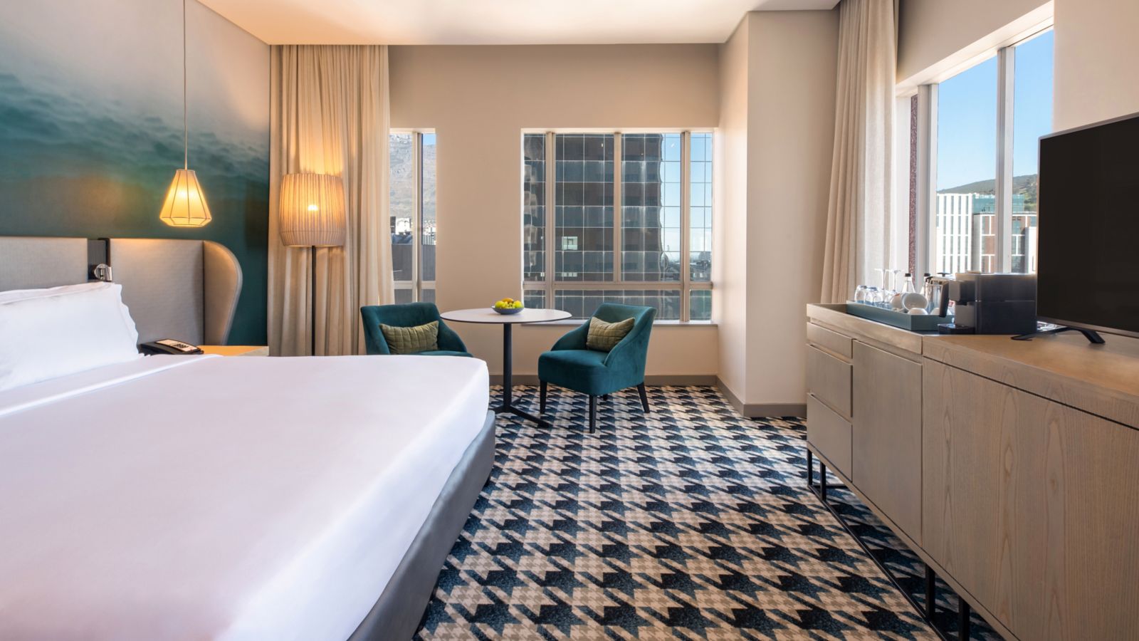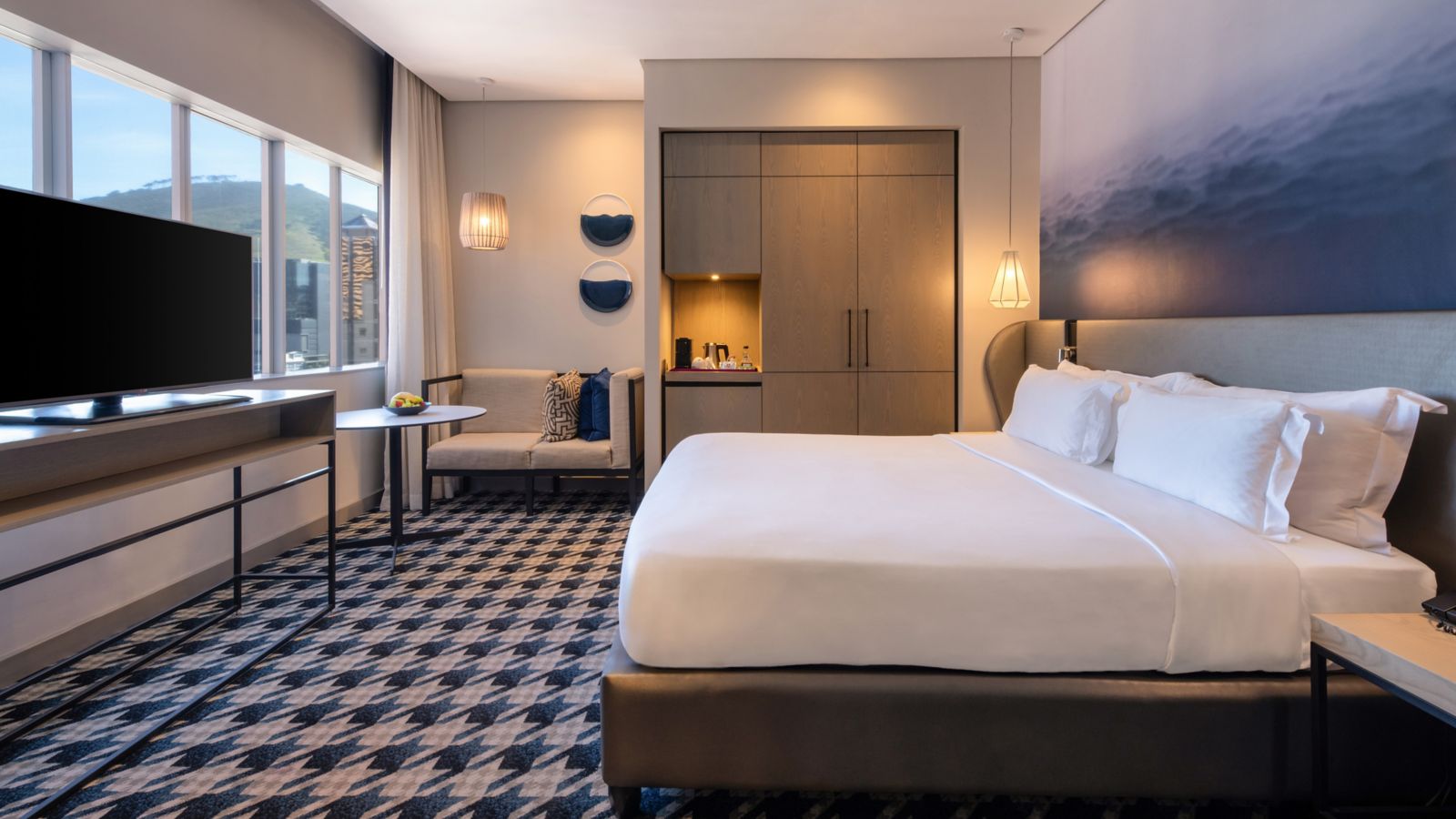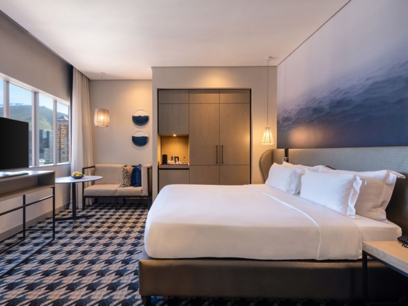 Das Executive King-Zimmer im Pullman Kapstadt bietet 36 m2 Premiumfläche mit Kingsize-Bett, Espressomaschine, Minibar und Panoramablick. Ein Bad im Spa-Stil und exklusiver Zugang zur Executive Lounge runden das gehobene Erlebnis ab.