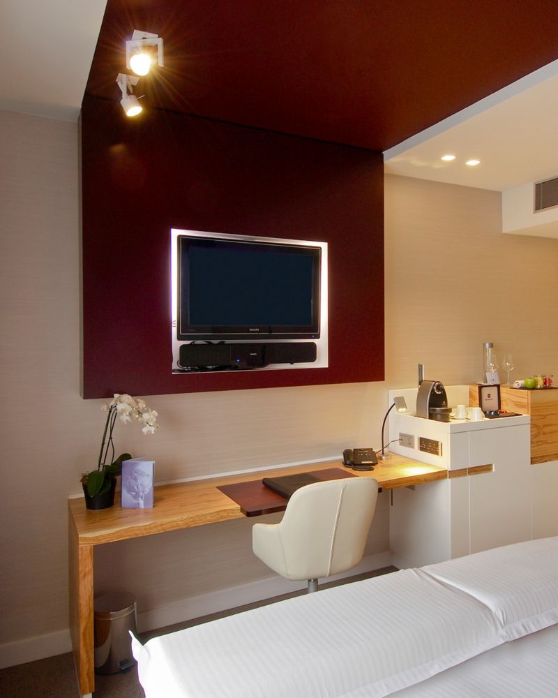 Zimmer 25 m² mit kostenlosem WLAN, Smart-TV mit Chromecast (iOS und Android), leerer Minibar, Bügeleisen und -brett, Safe, Regendusche und Wanne, C.O.- Bigelow-Artikeln, Bademantel, Hausschuhe, Nespresso.