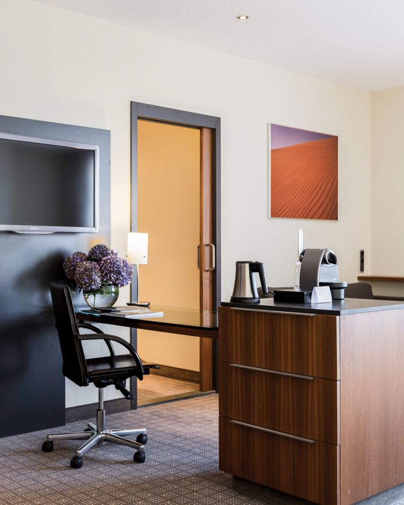 52 m² Suite mit kostenlosem WIFI, Smart-TV mit Chromecast (iOS und Android), gefüllter Minibar, Bügeleisen und Bügelbrett, Safe, Dusche und Badewanne, C.O. Bigelow-Toilettenartikeln, Bademantel, Hausschuhe, Nespresso-Maschine, separatem Wohnzimmer