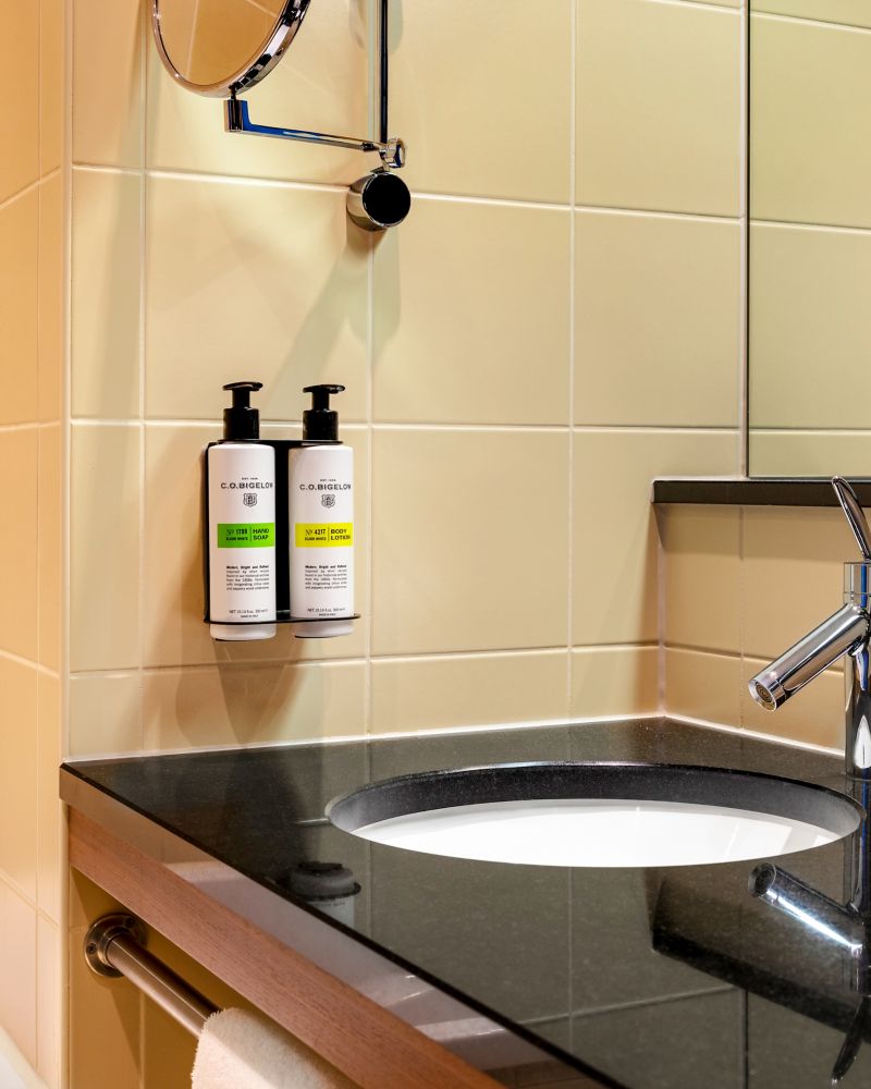 30 m² Zimmer mit kostenlosem WIFI, Smart-TV mit Chromecast (iOS und Android), leerer Minibar, Bügeleisen und Bügelbrett, Safe, Regendusche und Badewanne, C.O. Bigelow-Toilettenartikeln, Bademantel, Hausschuhe, Nespresso-Maschine.