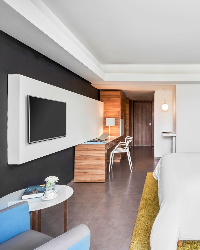 Im Superior Zimmer mit einem Kingsize-Bett verschmelzen Momente der Ruhe und Kreativität. Auf 28 m² (301 sqft) bietet es intuitive Technologien und durchdachte Annehmlichkeiten – perfekt für eine belebende Auszeit.
