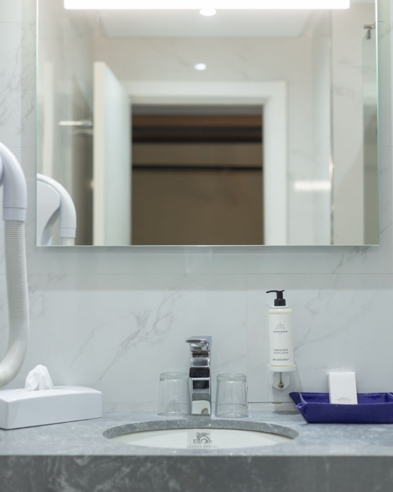 35 m² großes, elegantes, komfortables Zimmer mit Schlafsofa, Balkon oder Terrasse, WIFI, LCD-Fernseher mit Satellitenempfang, Safe, Minibar, Badezimmer mit Dusche, separatem WC, Haartrockner, Klimaanlage, Begrüßungstablett.